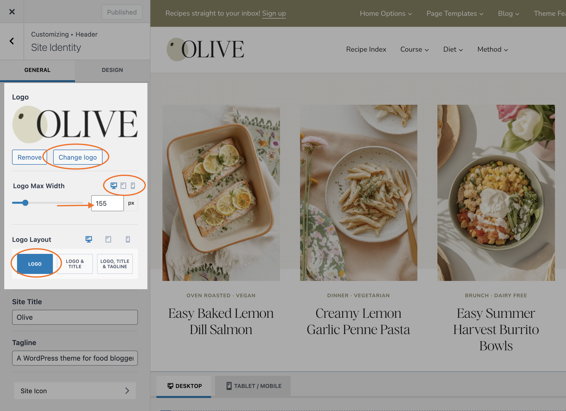 - Under Logo Layout, select Logo + Title
