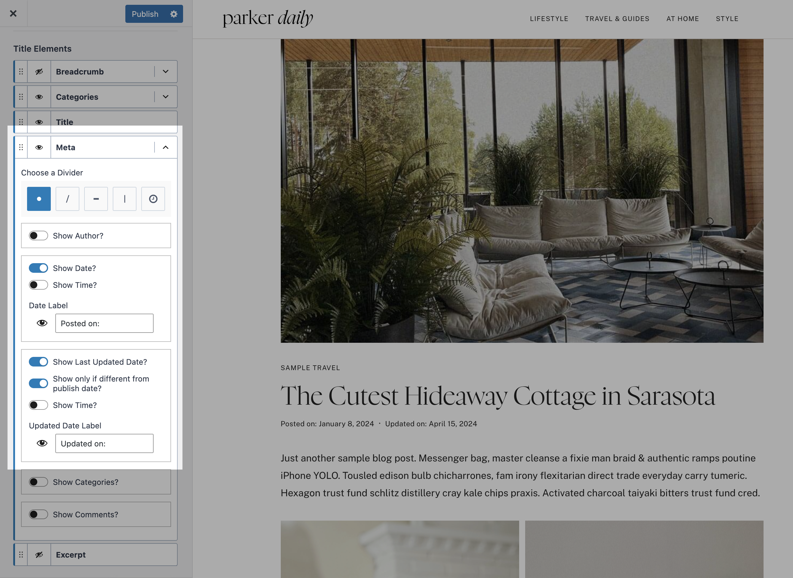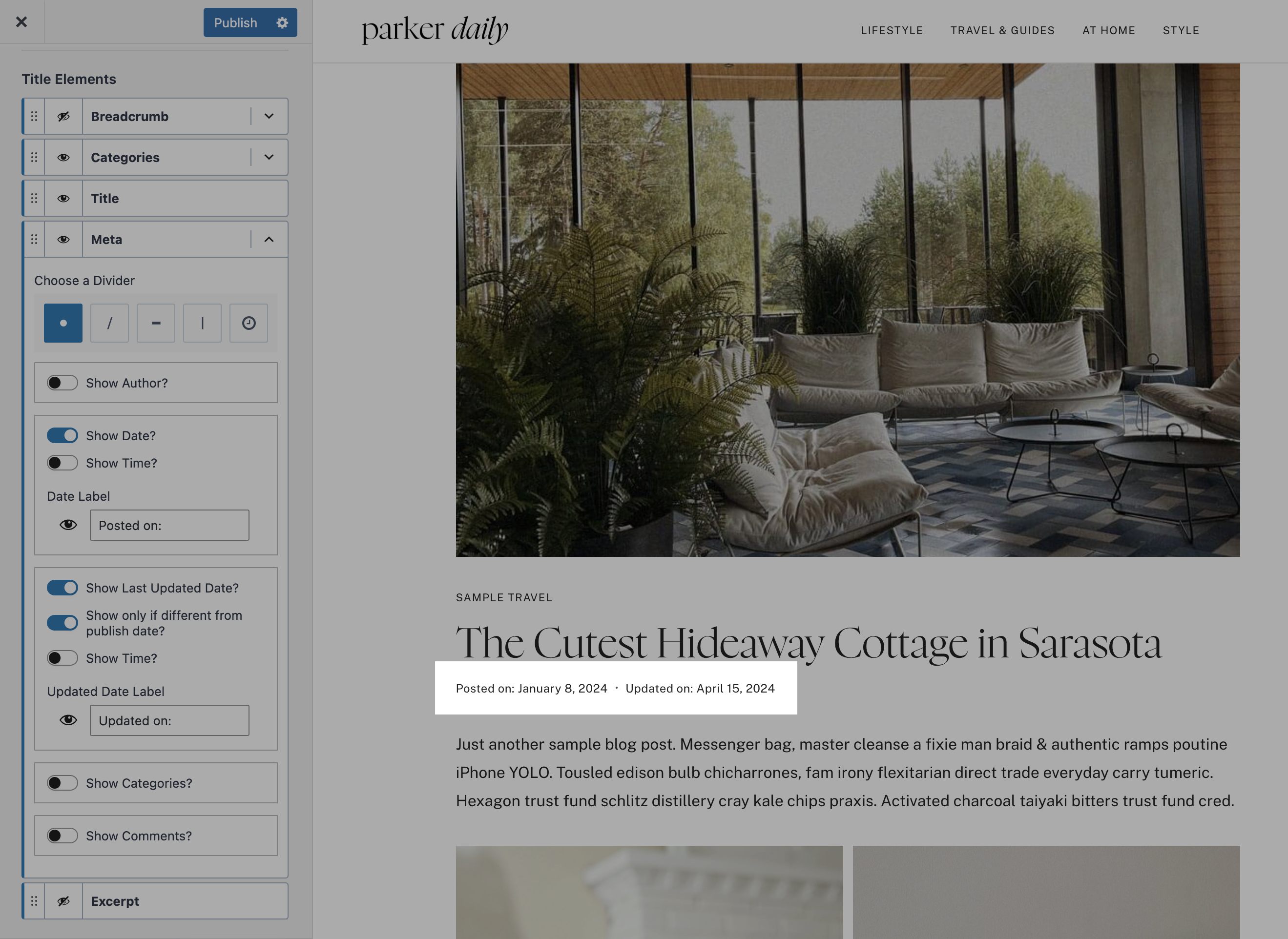 Sometimes you'll want readers to know not only when a blog post was first published, but also when it was last updated – especially if you update your posts regularly for SEO or accuracy.